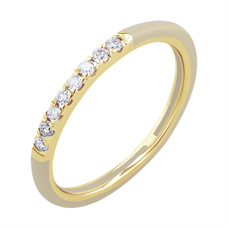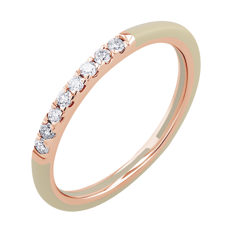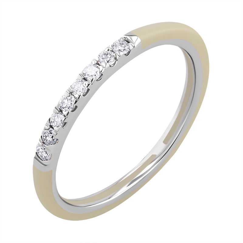 • der zarte Ring aus beigefarbener Keramik ist mit 8 Diamanten verziert