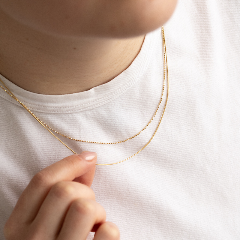 • dezente Kette mit einer Breite von 1 mm und einer Länge von 45 cm aus 14k Gold und dem Goldton Ihrer Wahl