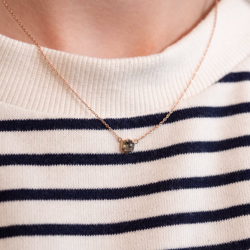 • ein seidig grauer Salt and Pepper Diamant ist der Blickfang dieser Kette