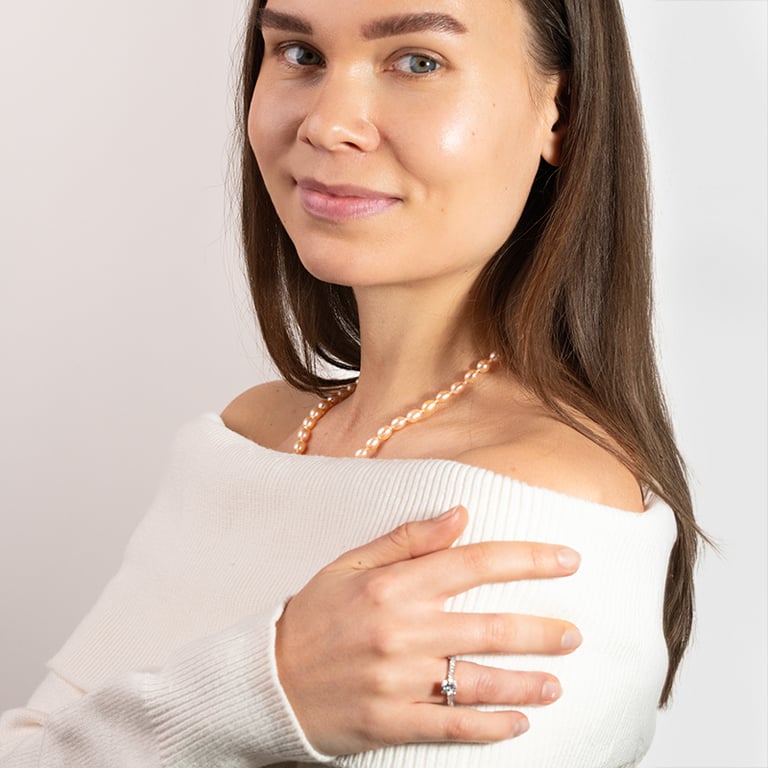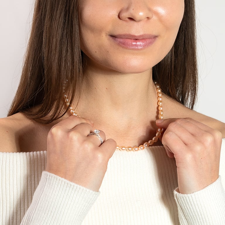 • die Süßwasserperlen sind besonders attraktiv mit ihrem Glanz und ihrer zartrosa Farbe