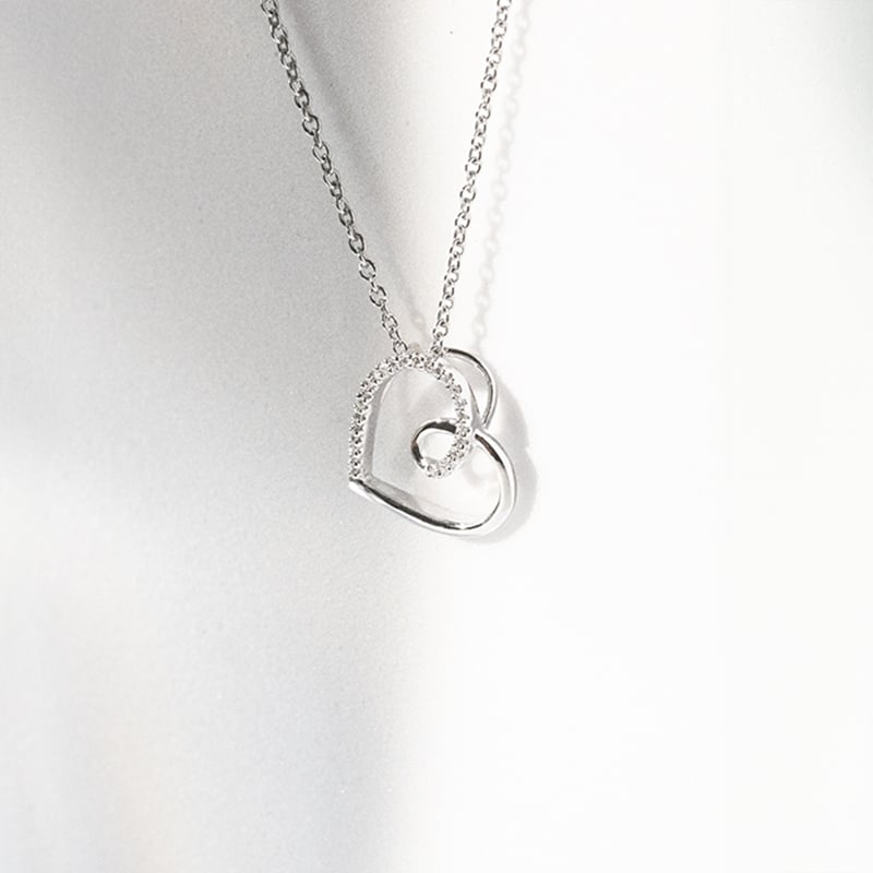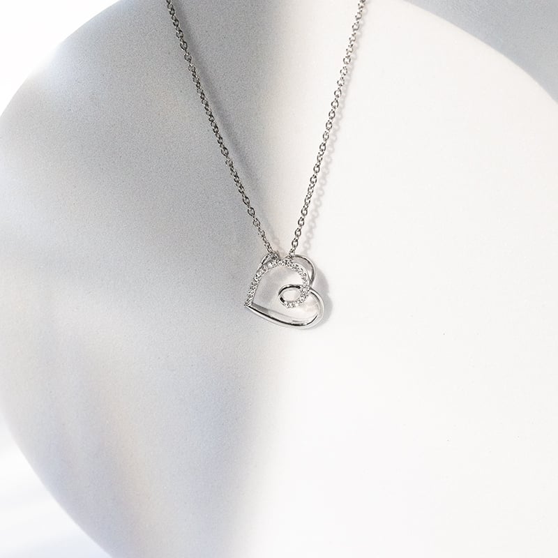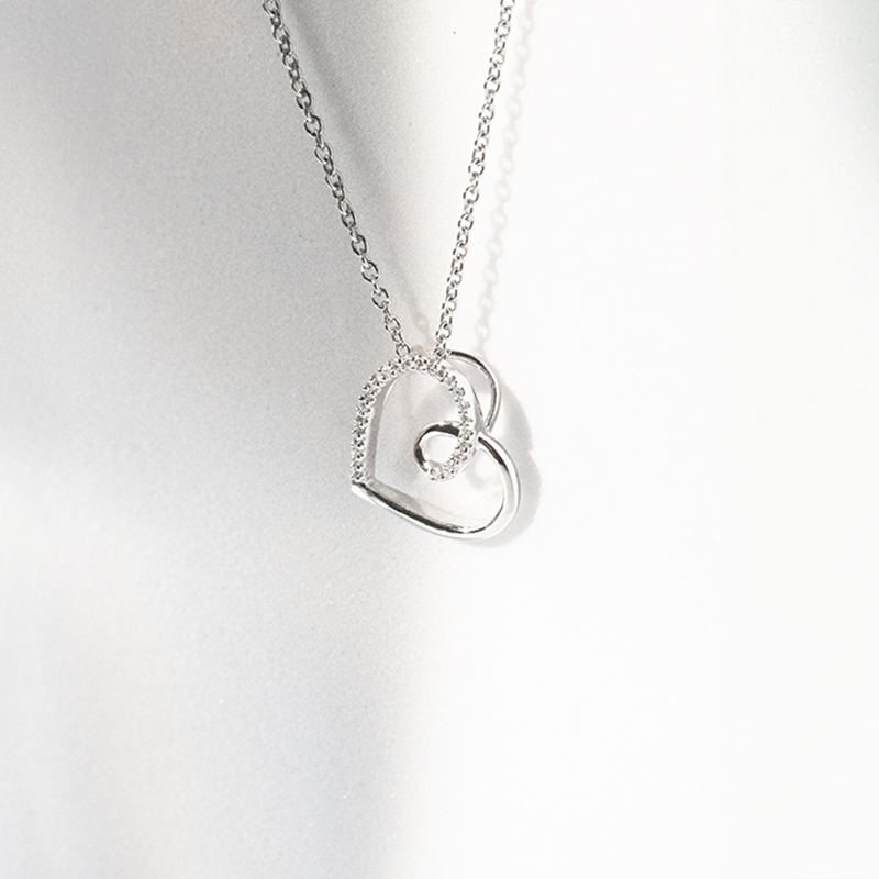 • eine Hälfte des Herzens ist mit 26 glänzenden runden Diamanten besetzt
