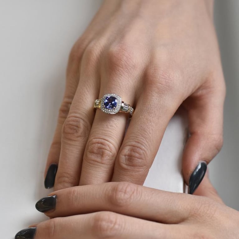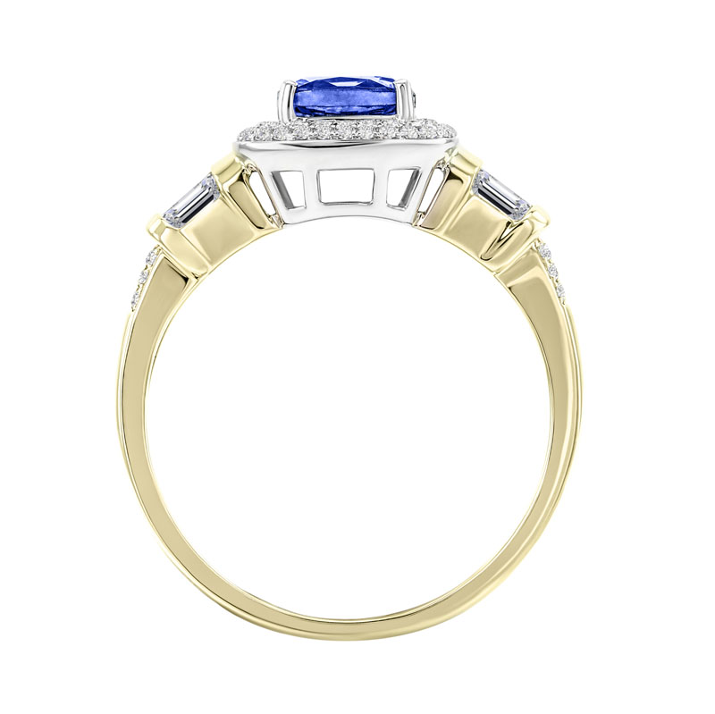 Königlicher Goldring mit Cushion Tansanit und Diamanten Glenna