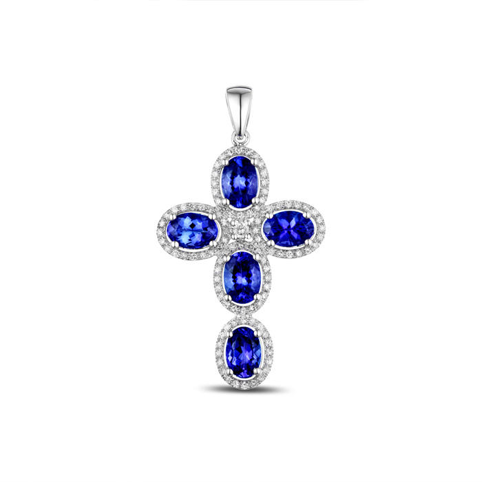 Kreuz mit Tansaniten und Diamanten Ezmae