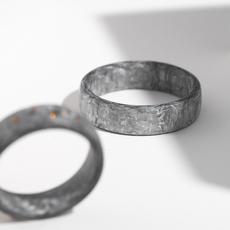 Leicht abgerundete Carbon Eheringe mit cognacfarbenen Diamanten Parri
