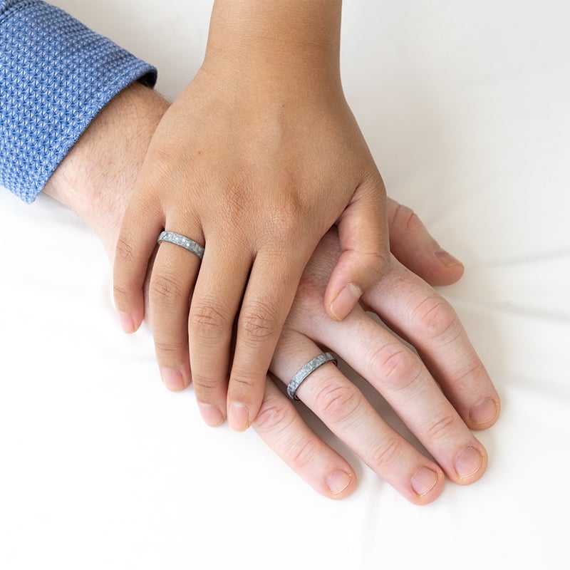 Leicht abgerundeter Ehering aus Carbon und Gold mit Diamant Otis