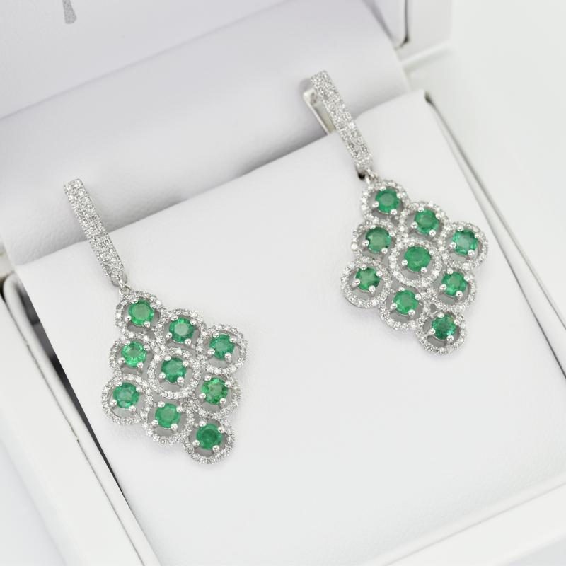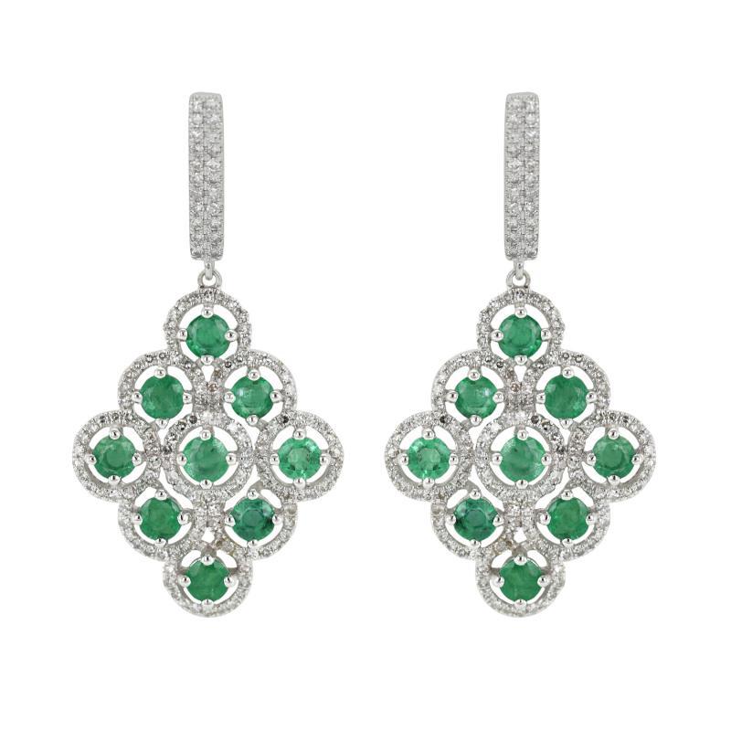 Luxuriöse Hängeohrringe mit Smaragden und Diamanten Clemence