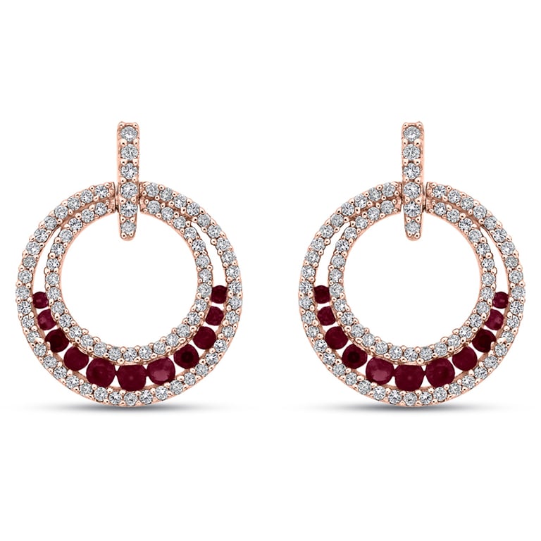 • den Ohrringen verleihen die zeitlosen Diamanten und sinnlichen Rubine einen Funken