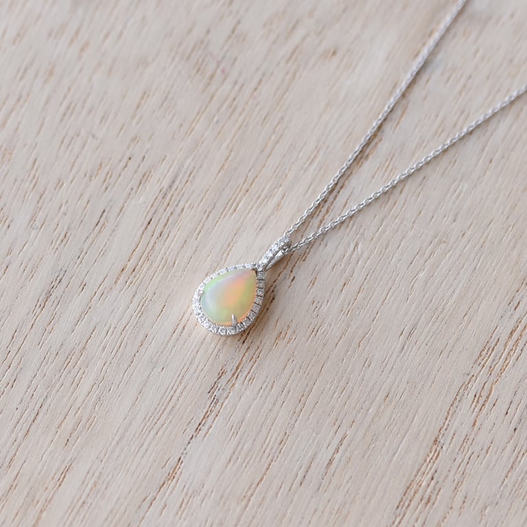 Luxuriöser Anhänger mit weißem Opal und Diamanten Gale