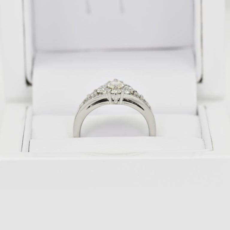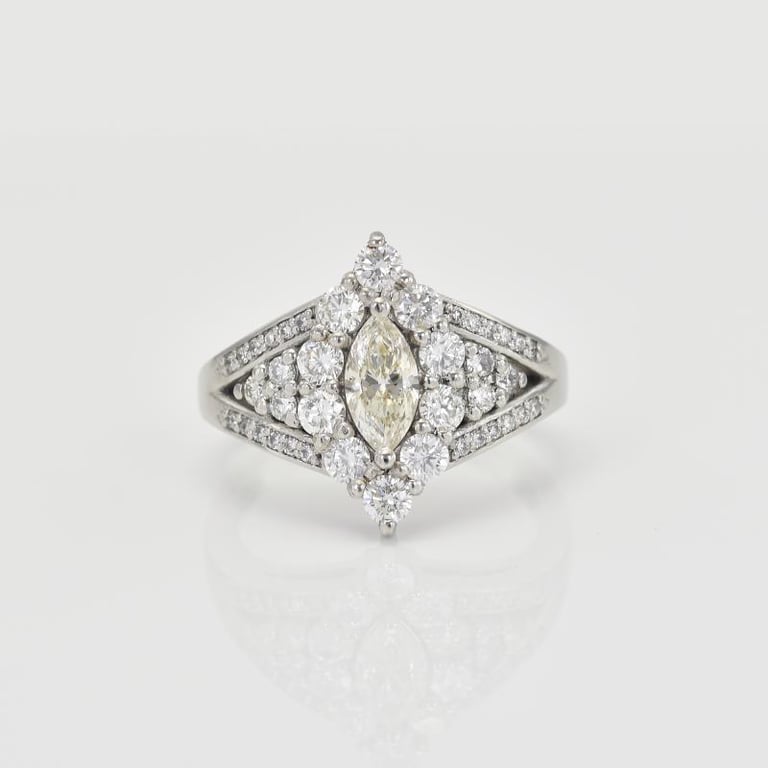 • geschmückt mit 40 runden Diamanten und einem zentralen Diamanten in Marquise-Form