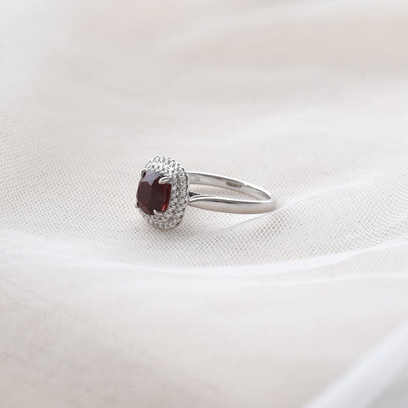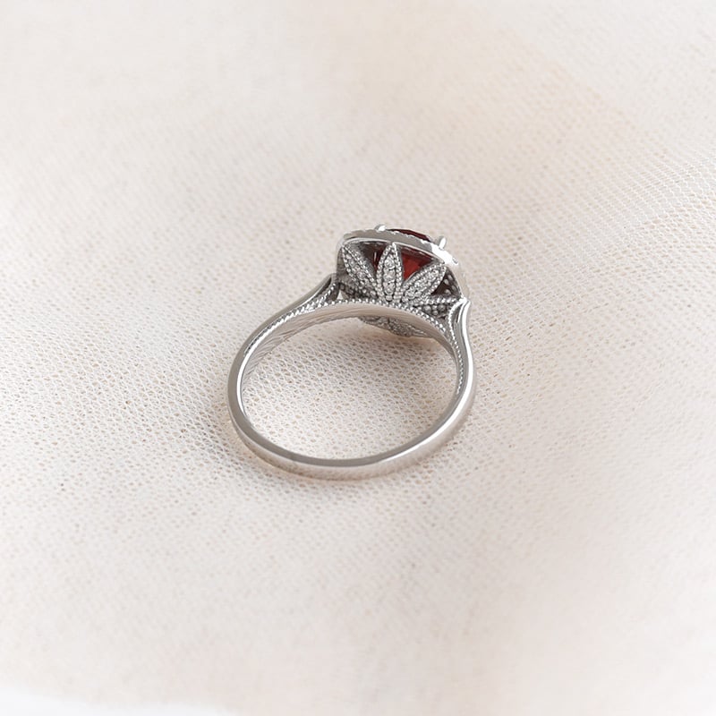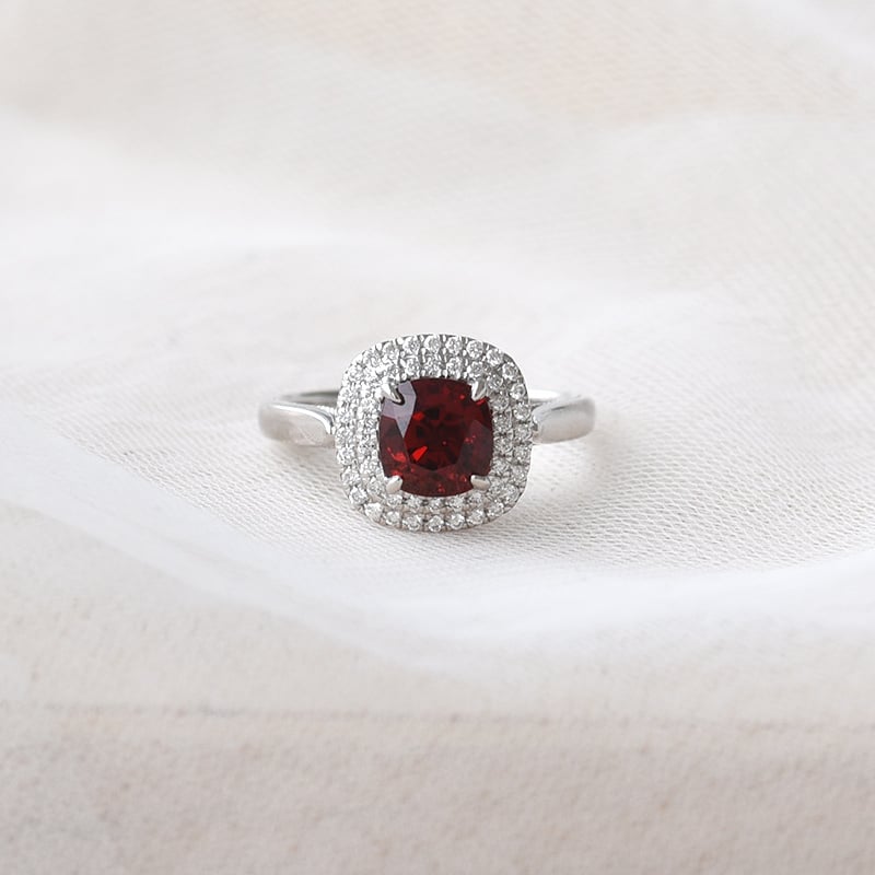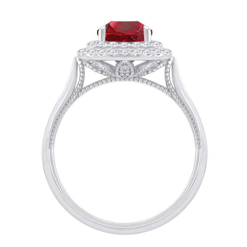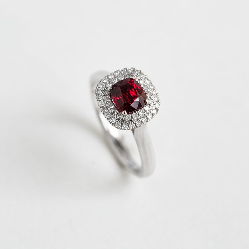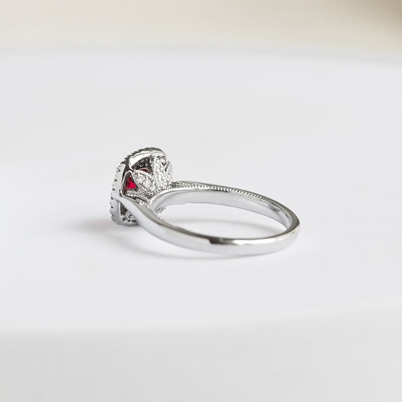 • insgesamt bilden 62 natürliche Diamanten einen Halo um den zentralen Edelstein und schmücken auch einen Teil des Rings