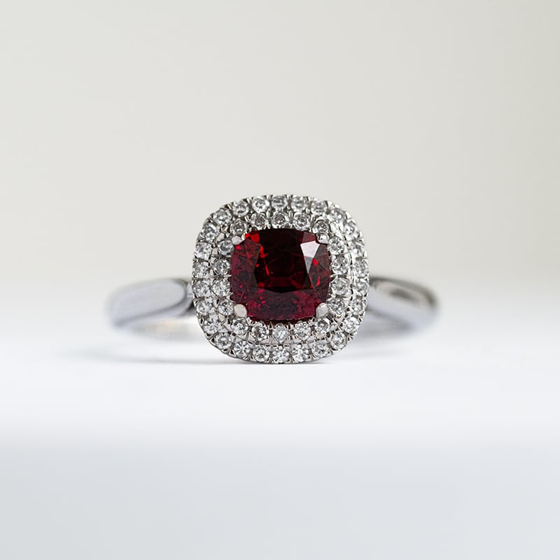 • ein perfekt bis ins kleinste Detail gearbeiteter Ring, besetzt mit einem markanten orange-roten Spinell