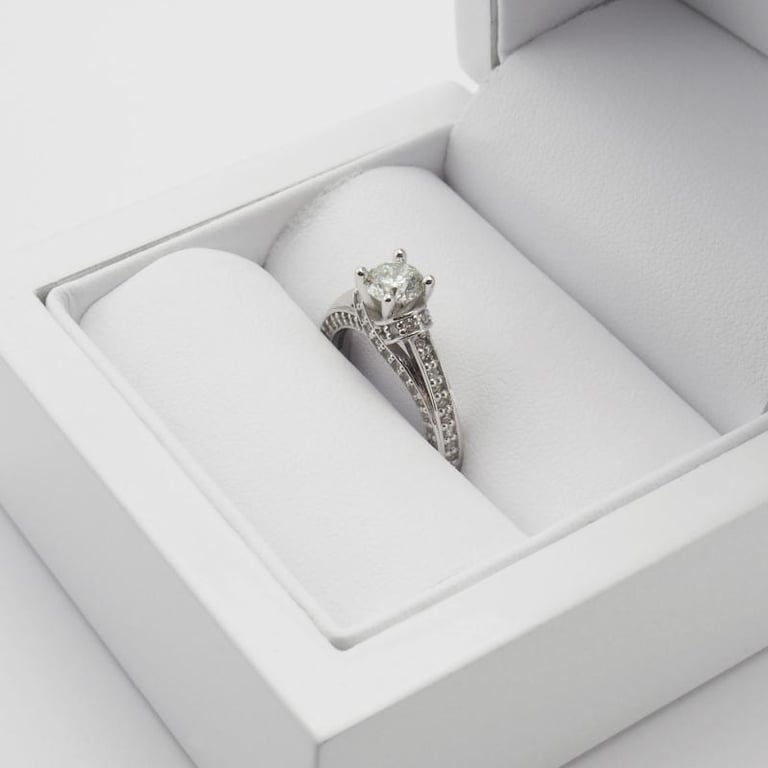 • ein zentraler Diamant Ihrer Wahl wird von insgesamt 70 seitlichen Diamanten begleitet