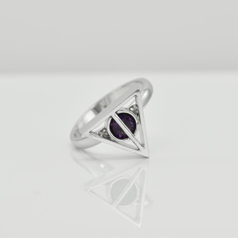 • Platinring mit violettem Amethyst, der Sie in die Zauberwelt Harry Potters führt