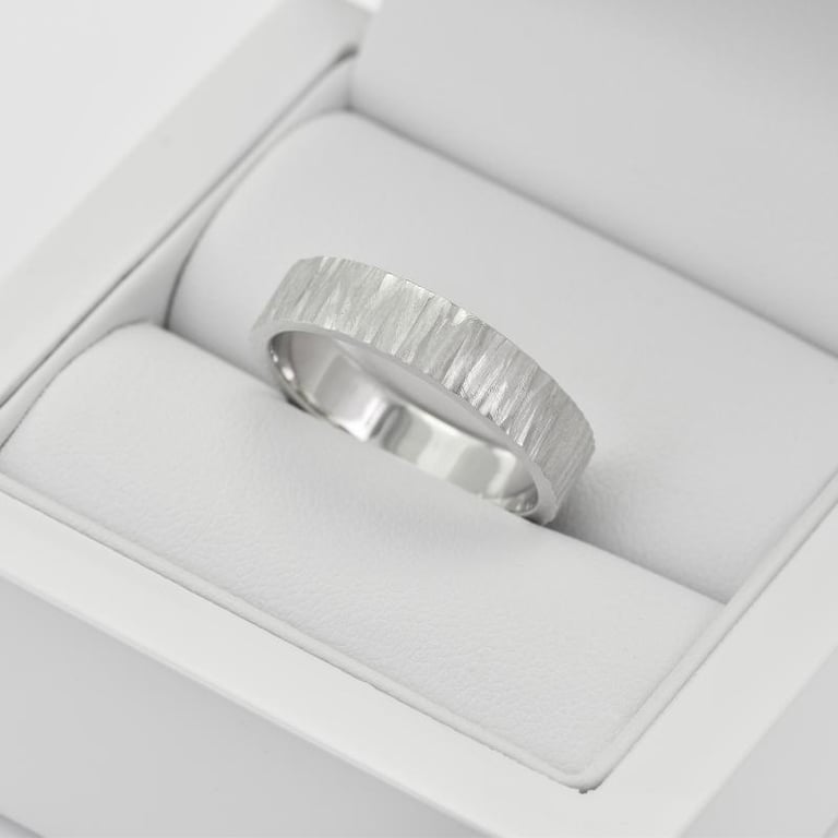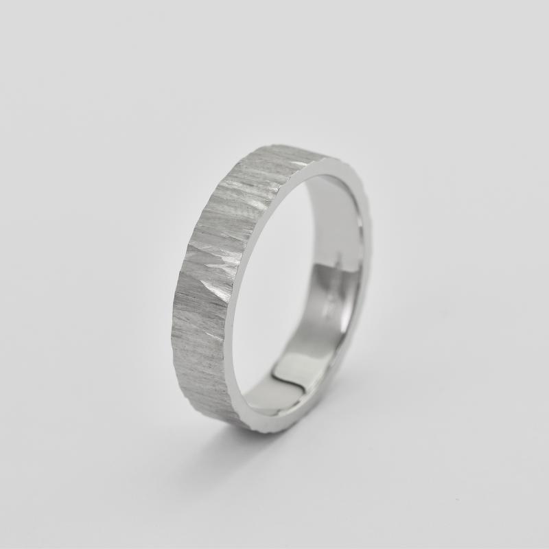 • moderne Eheringe aus Gold mit mattem Hammerschlag-Relief