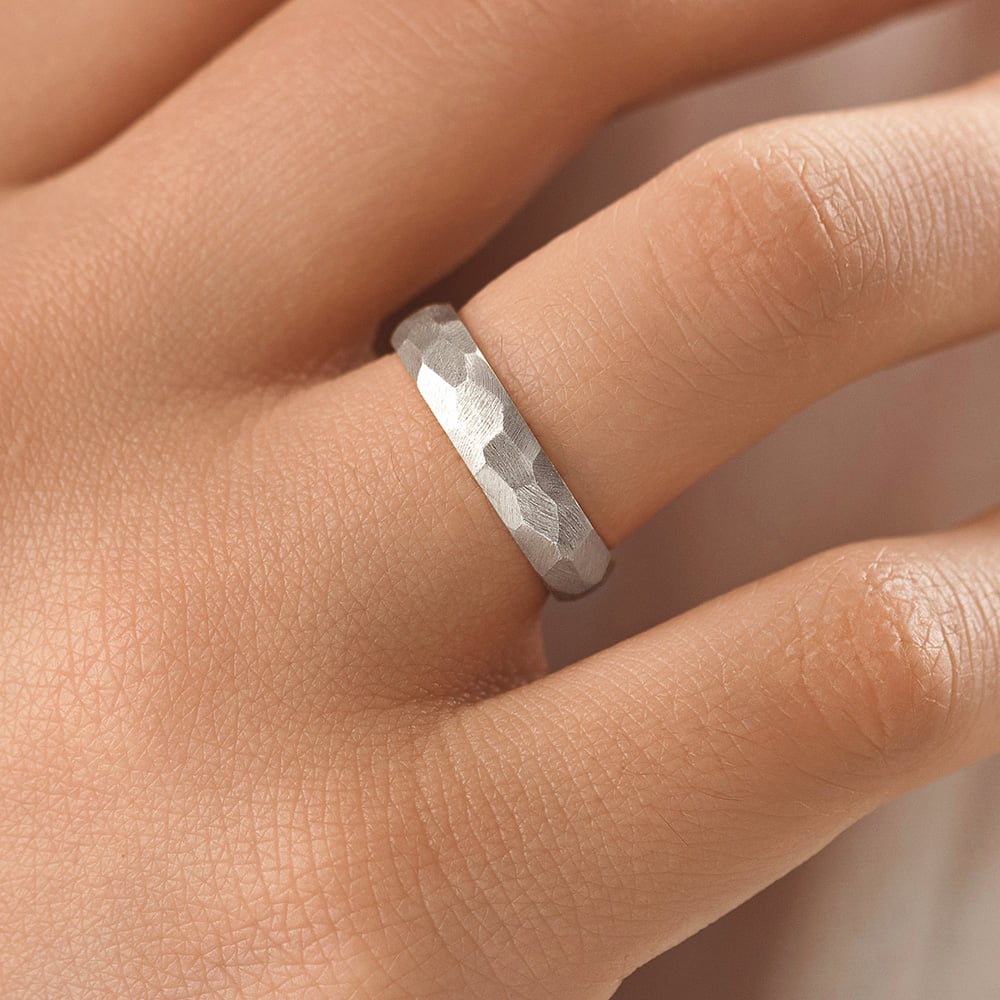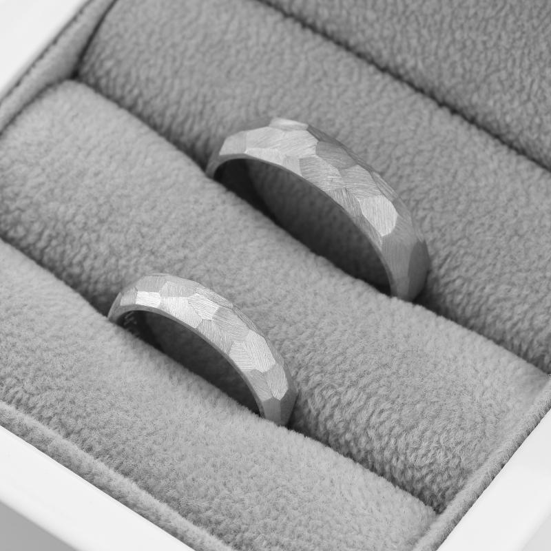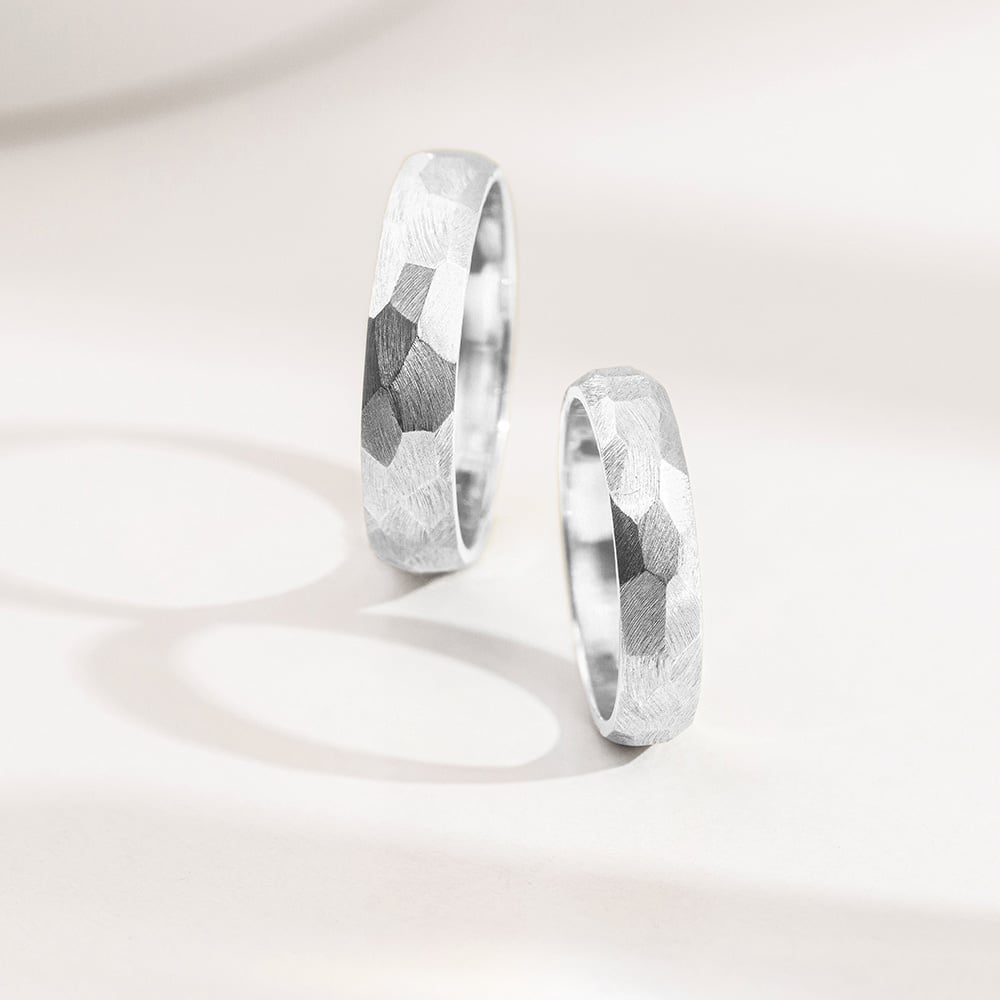• besondere, außergewöhnliche matte Eheringe mit Hammerschlag-Relief