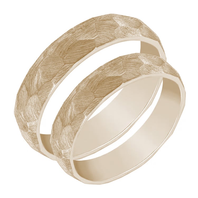 Matte gehämmerte Eheringe aus Haselnussgold Zvezda
