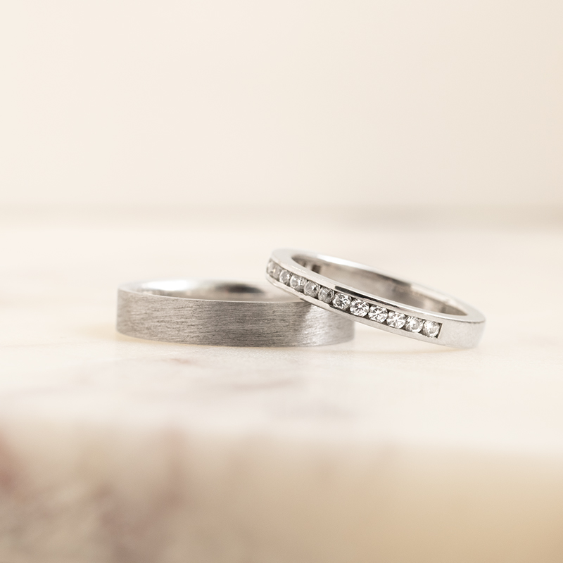 • die 2mm großen Diamanten sind in der sicheren Tunnelfassung nahtlos zu einem Band aneinandergereiht