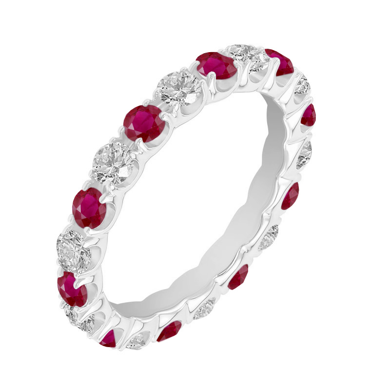 • der stilvolle Ring ist mit zehn Diamanten und zehn Rubinen besetzt