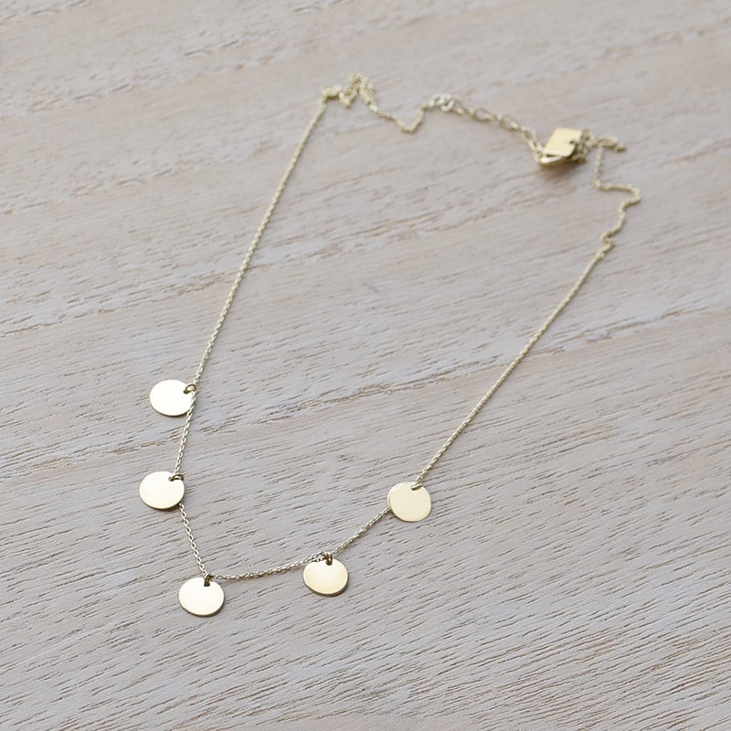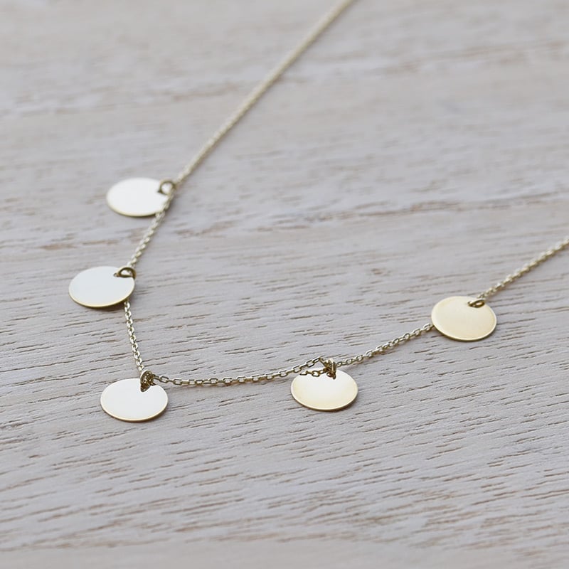 • eine zarte Kette mit strahlenden Münzen, die jedes Outfit zum Funkeln bringen