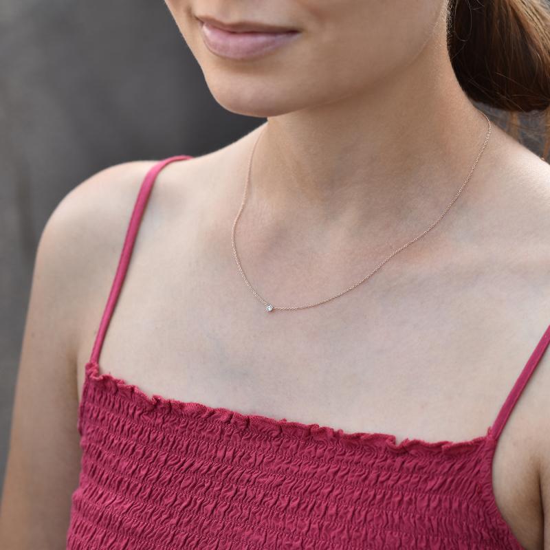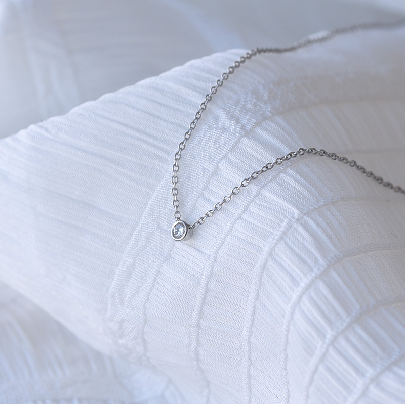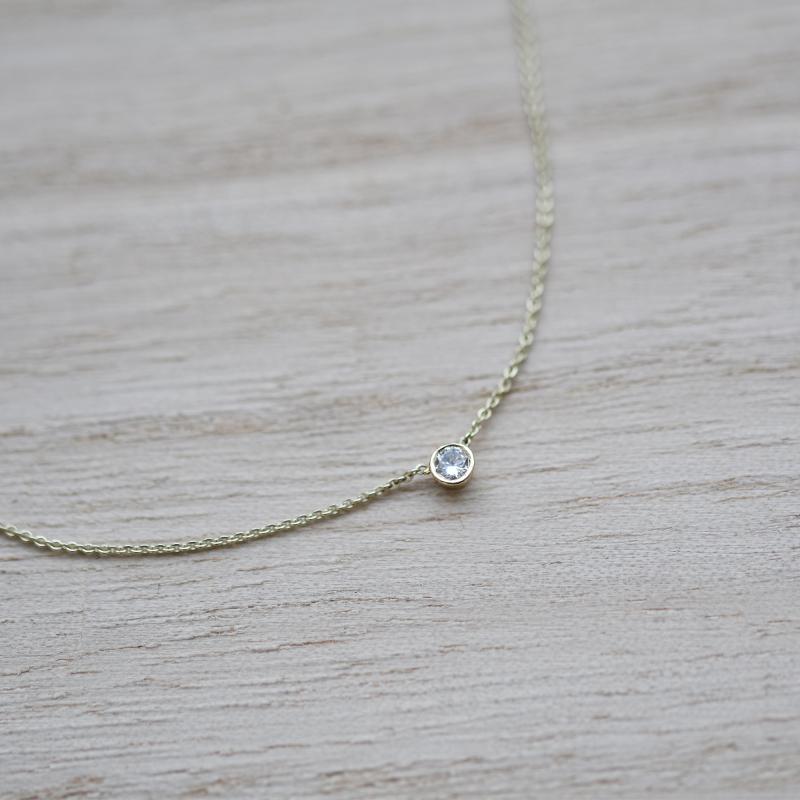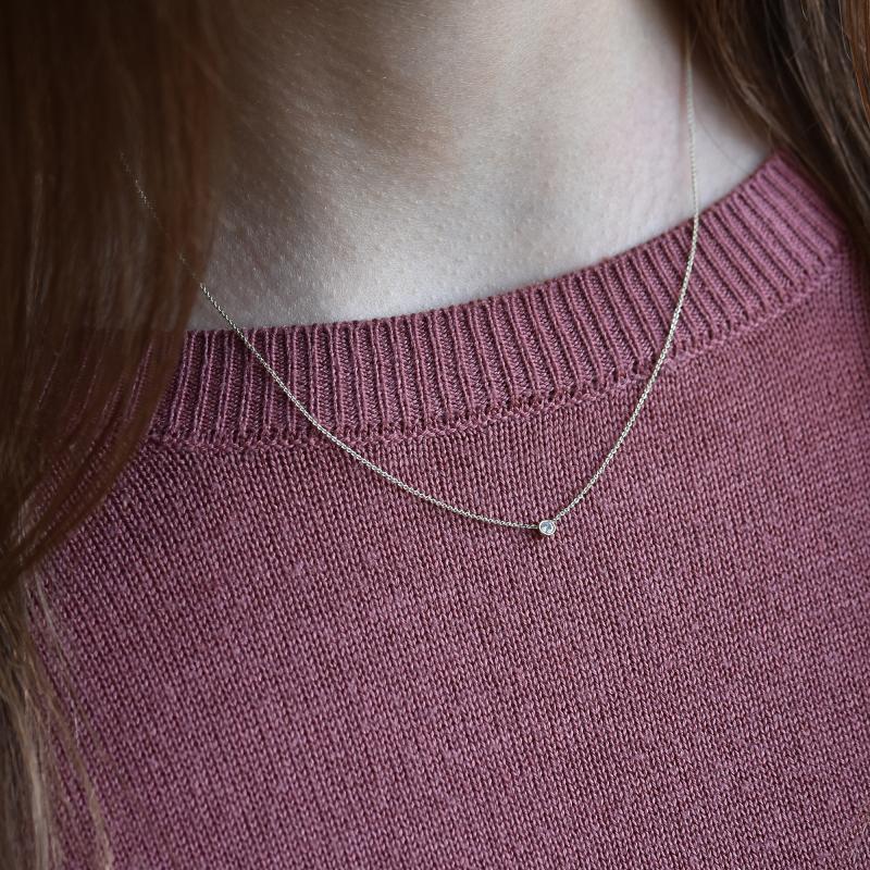 • minimalistische Halskette mit einem strahlenden, runden Moissanit