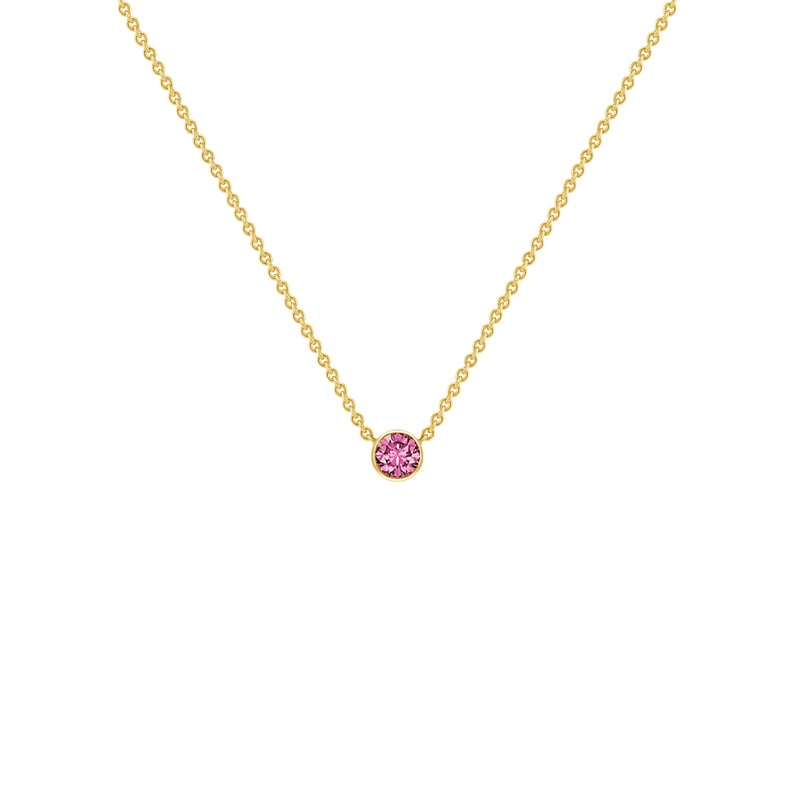 • eine zarte Kombination aus einer feinen Kette von Typ Anker und einem rosa Saphir