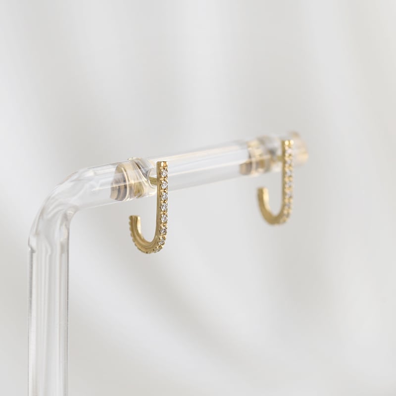 • goldene Ohrstecker, die wie Ringohrringe wirken