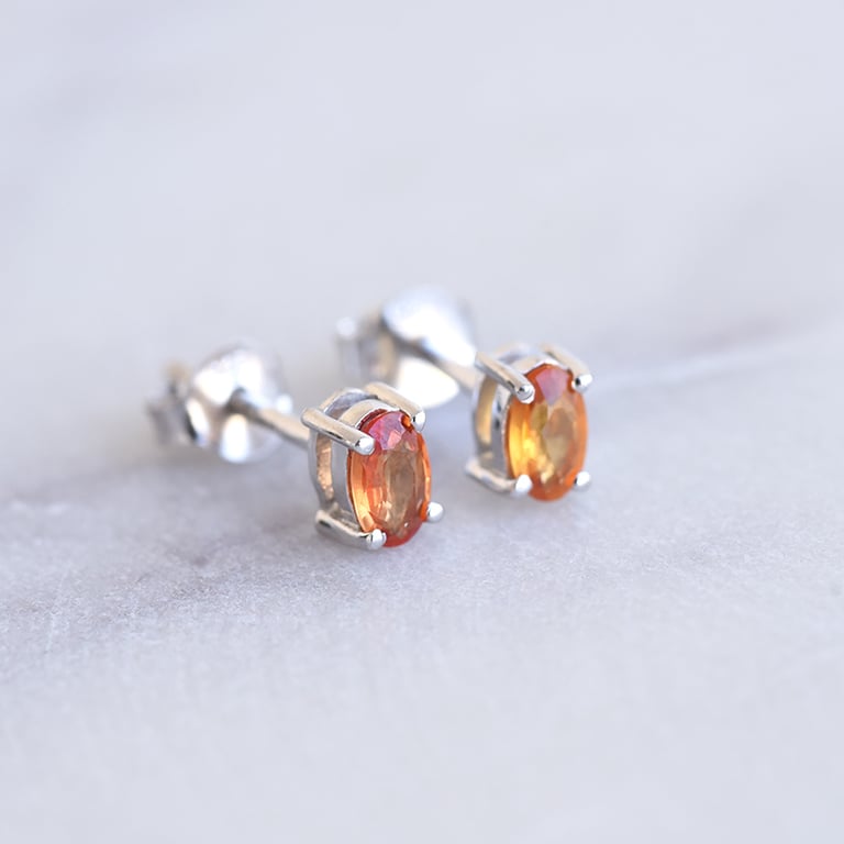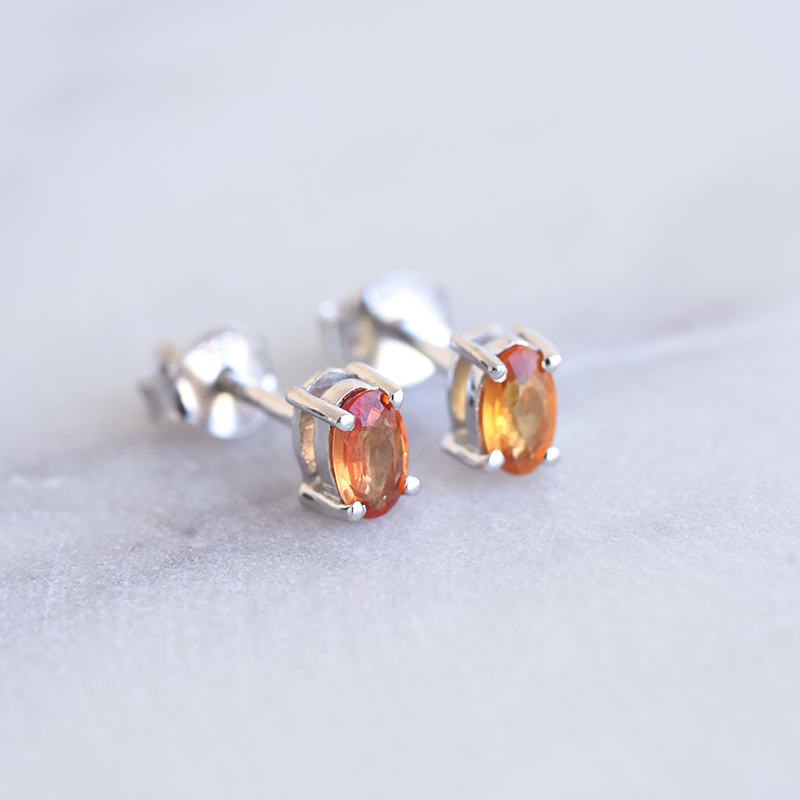 • diese kleinen Ohrringe mit orangefarbenen Saphiren können Sie überall und jederzeit tragen