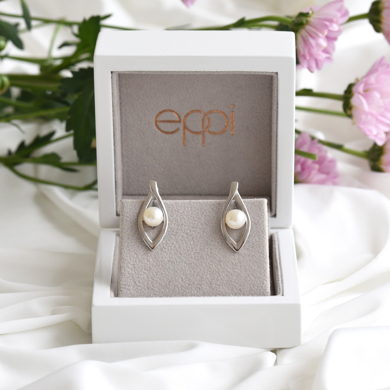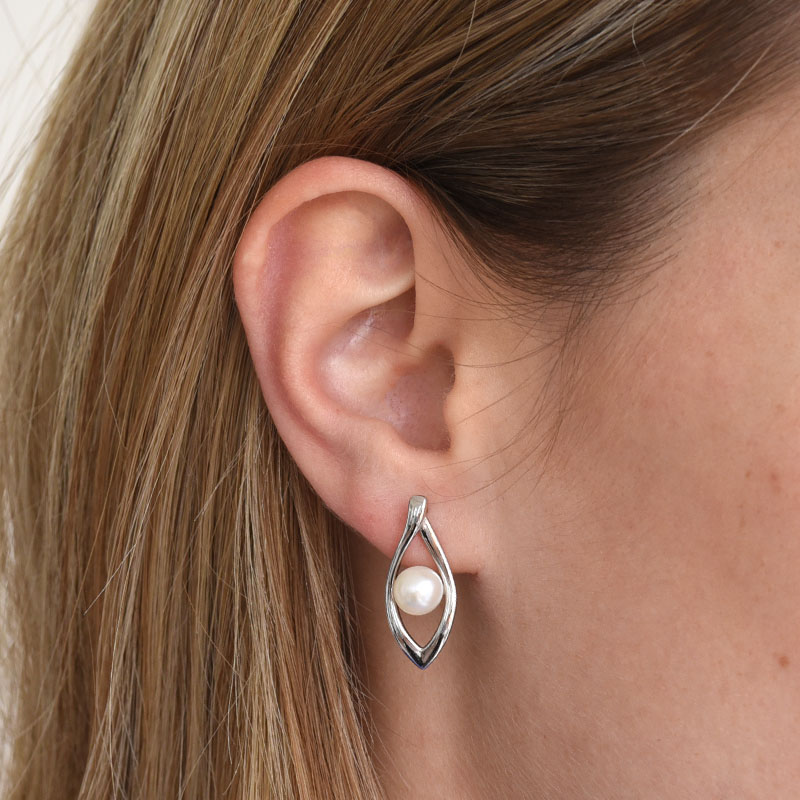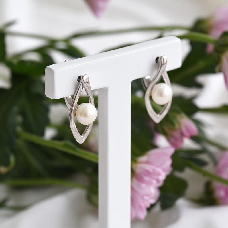 • Perlen-Ohrringe aus Silber im minimalistischen Stil