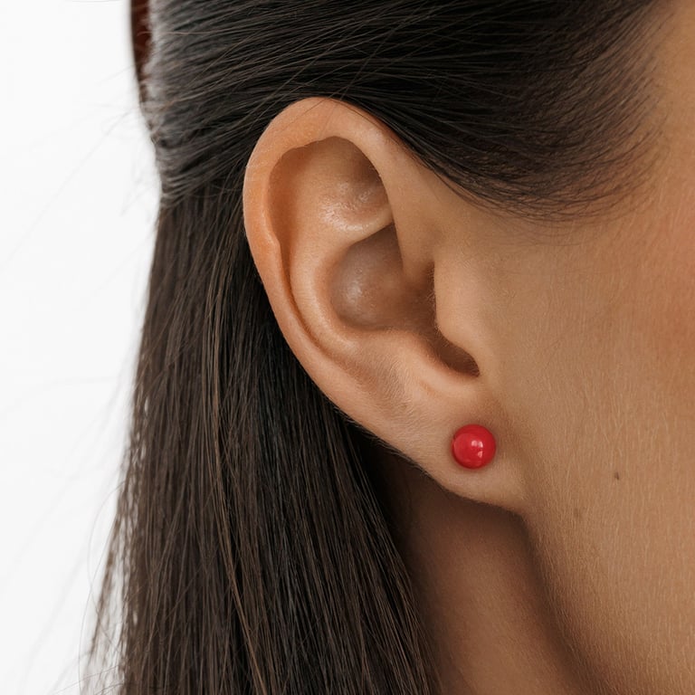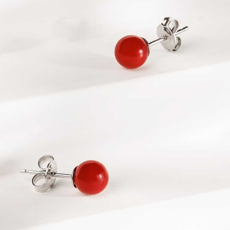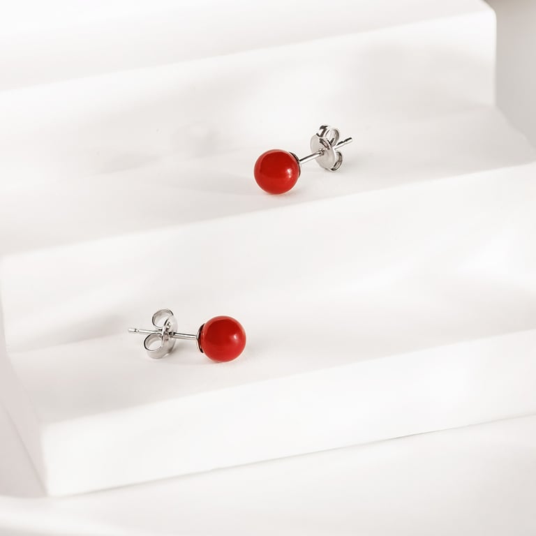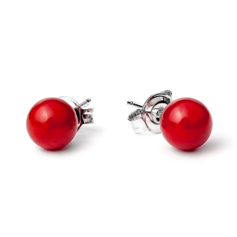 • Ohrstecker aus Silber werden von Korallen in einem unübersehbaren Farbton geschmückt