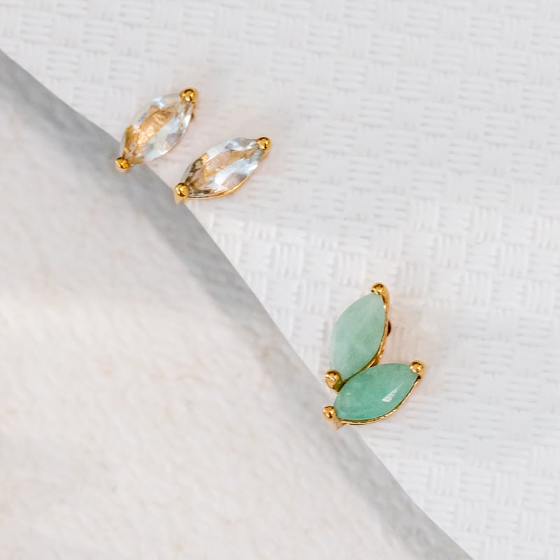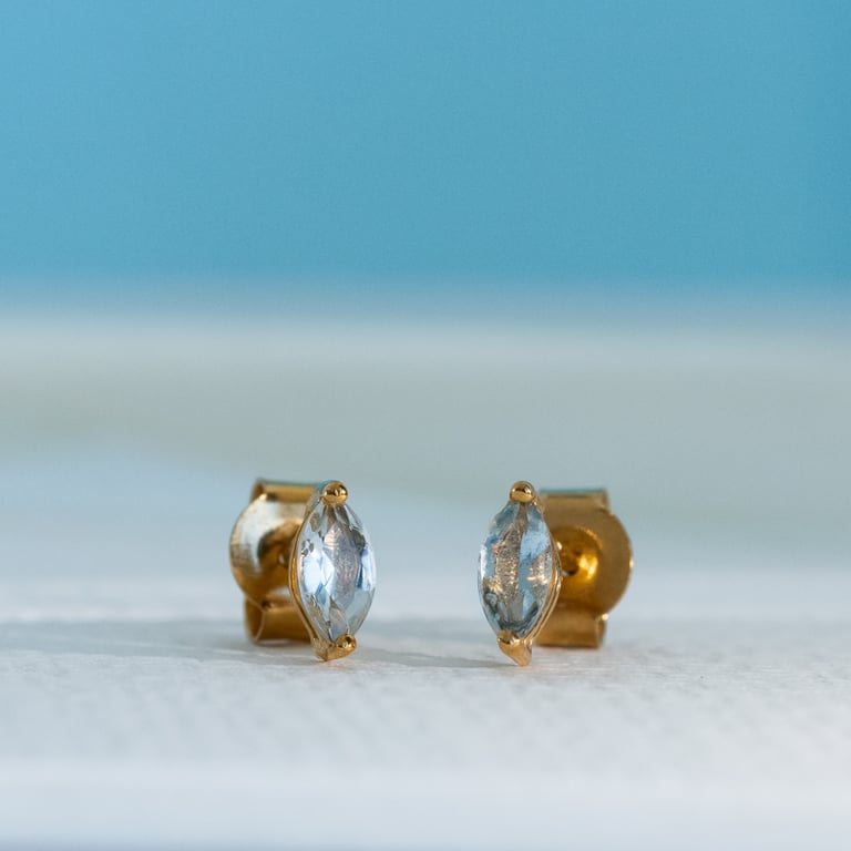 Goldener Piercing Ohrstecker mit Aquamarinen Masha