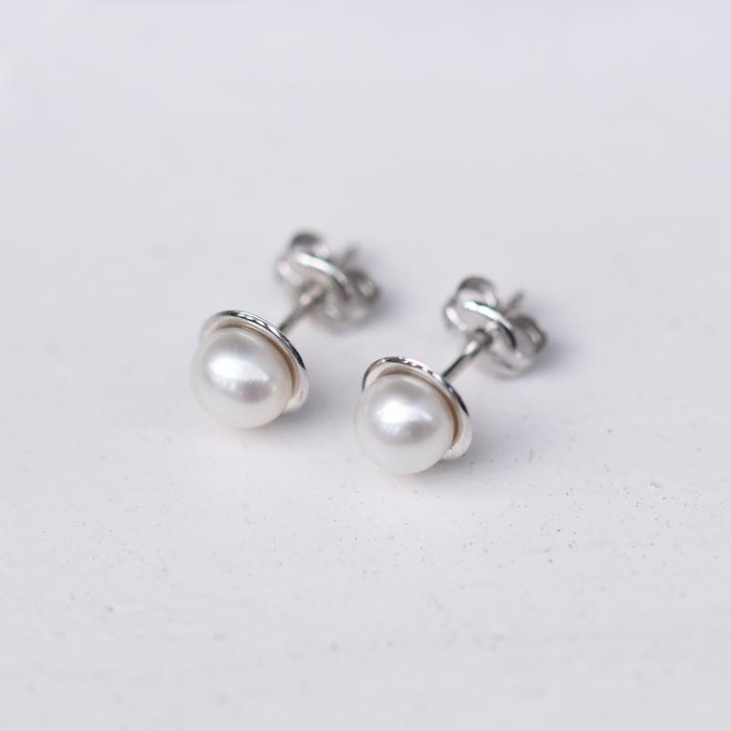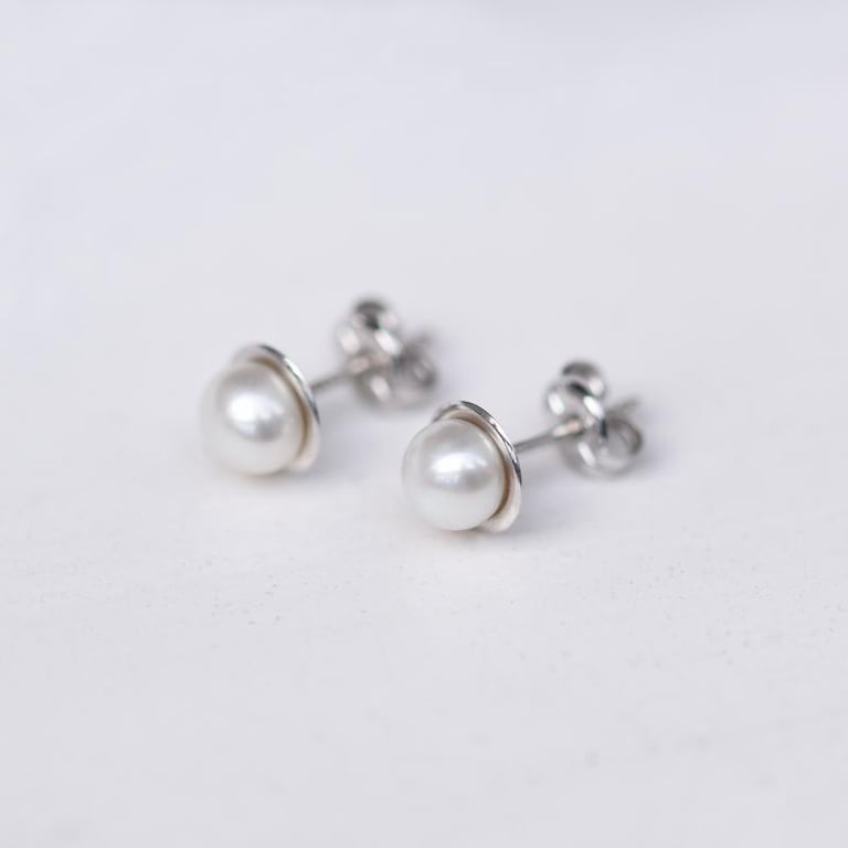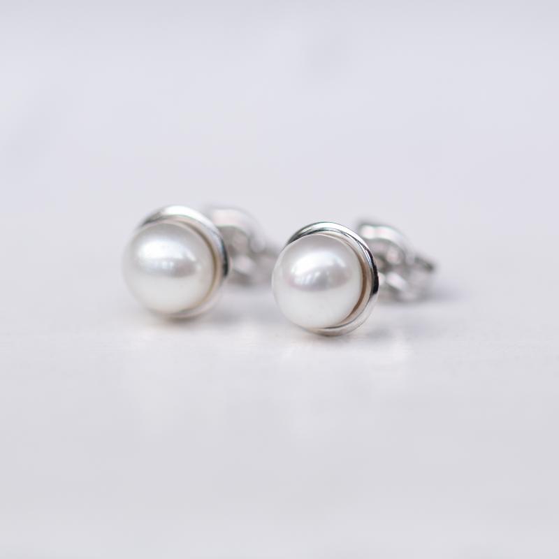 Minimalistische Perlenohrringe aus Weißgold Carlote