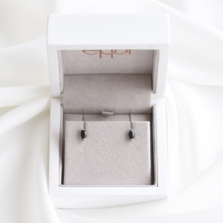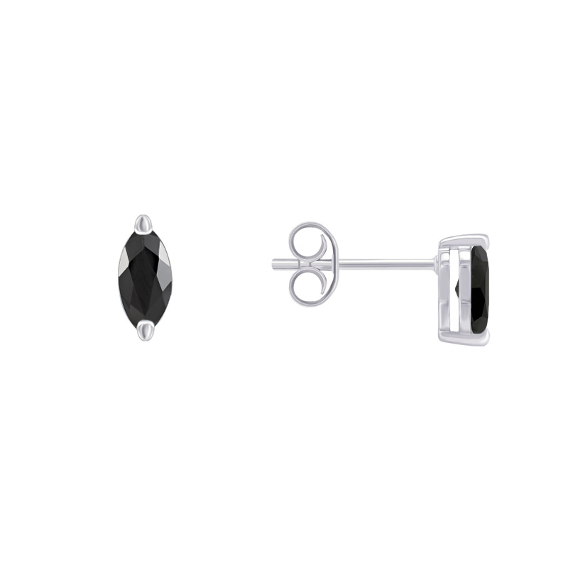 Minimalistische silberne Ohrringe mit schwarzem Spinell Andine