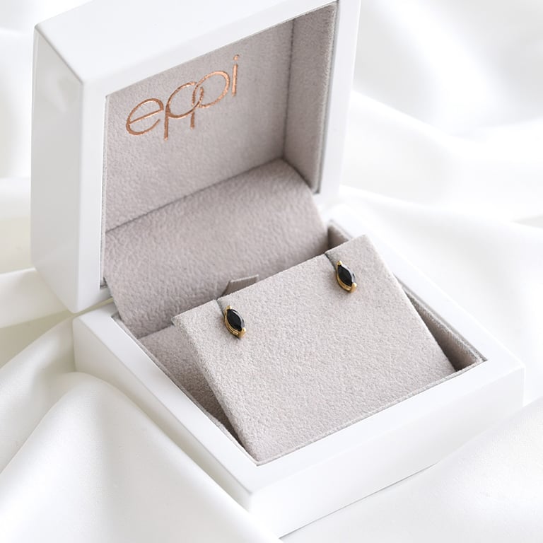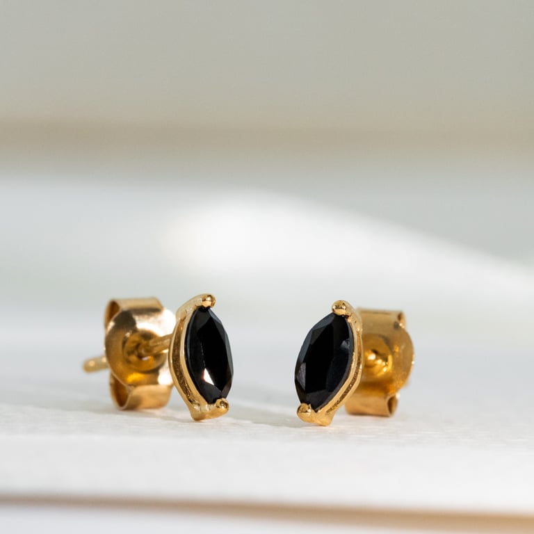 • die kleinen Ohrringe mit tiefschwarzen Spinell gibt es in den Varianten Silber oder vergoldet
