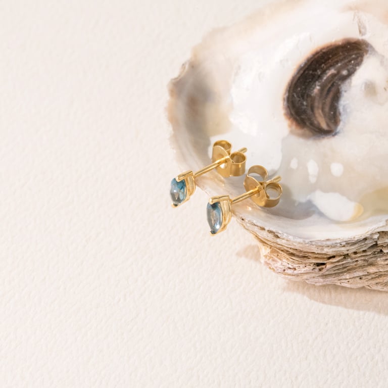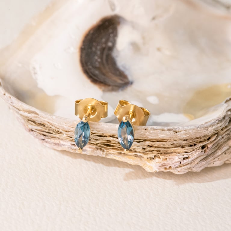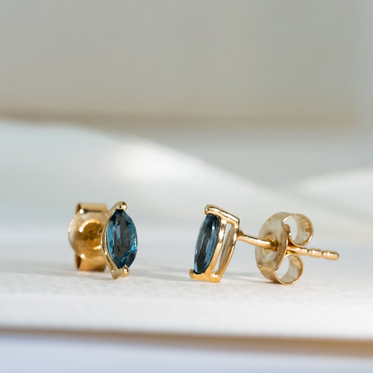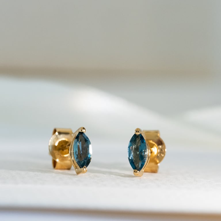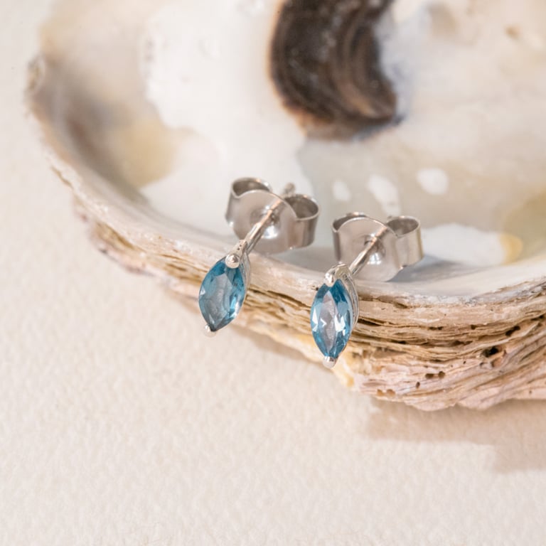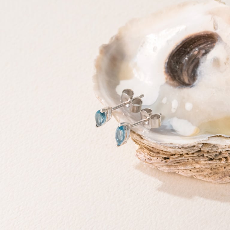 • die Topase in Londoner Blau in Marquise-Form geschliffen wirken besonders elegant
