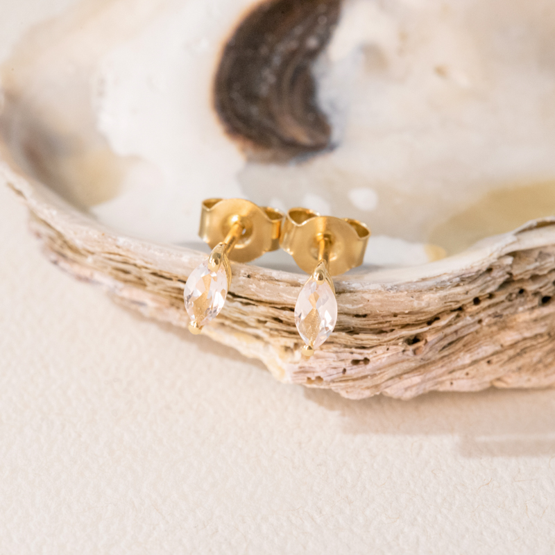 • die Morganite in romantischem pfirsichfarbenen Ton sind in Marquise-Form