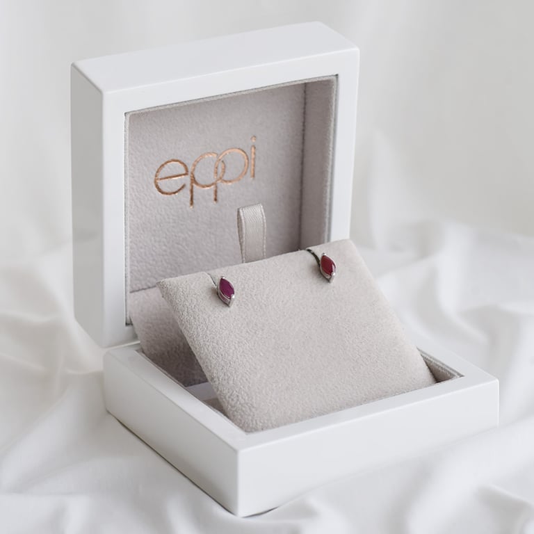 • die einzigartigen, silbernen Ohrringe haben rote Rubine in Form von kleinen Tränen