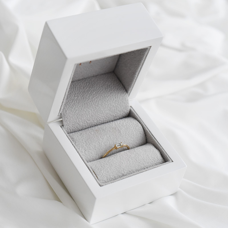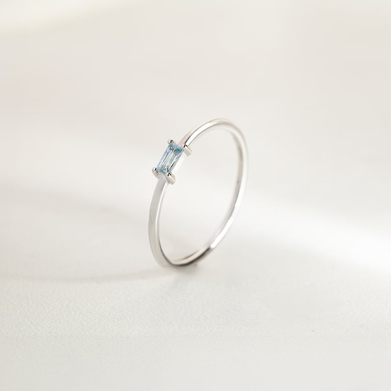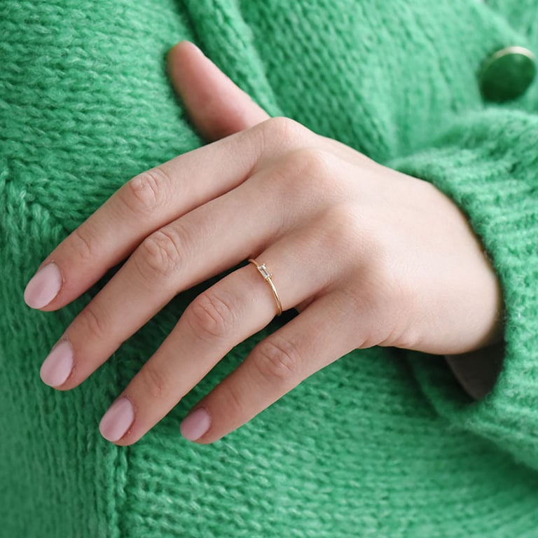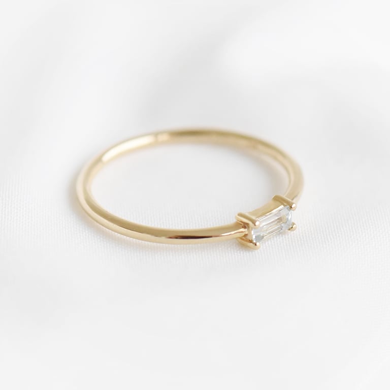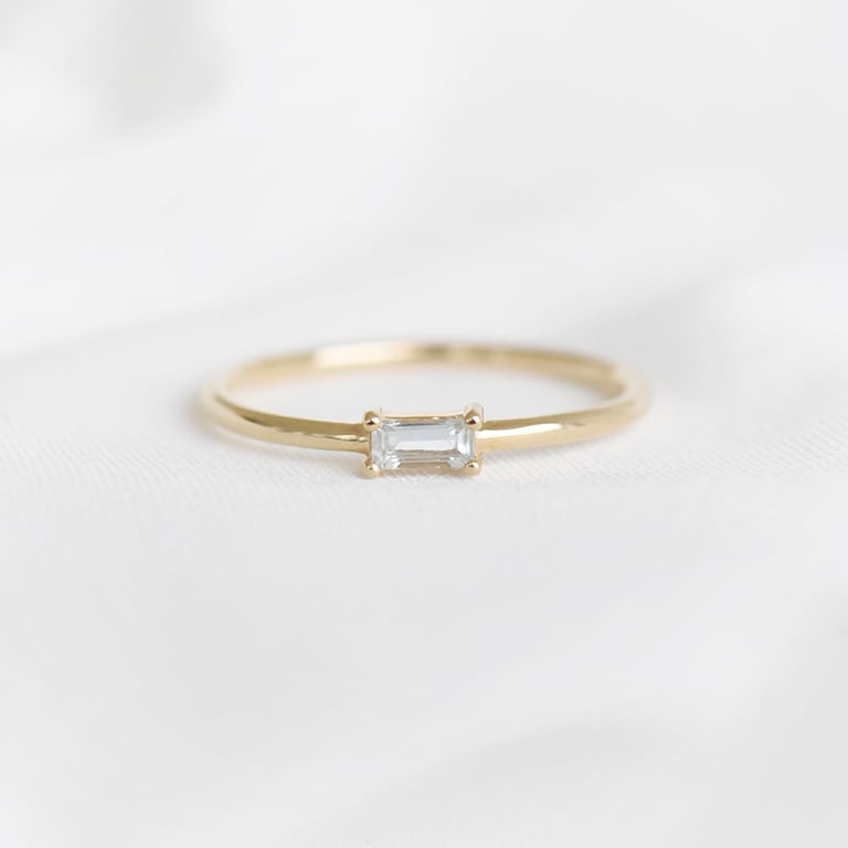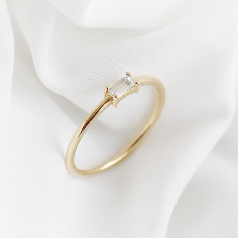 • ein schmaler Ring und ein Edelstein in Baguette-Form bilden zusammen einen perfekten minimalistischen Schmuck