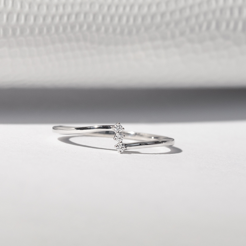 • ein ausgeklügelt gefasstes Trio von Diamanten schafft ein originelles und trendiges Design