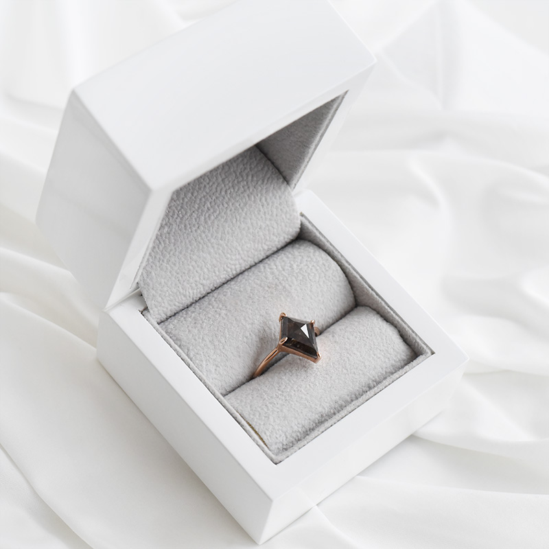 • eine einzigartige Kombination von einem grauen Diamanten mit Inklusionen und originellem Design