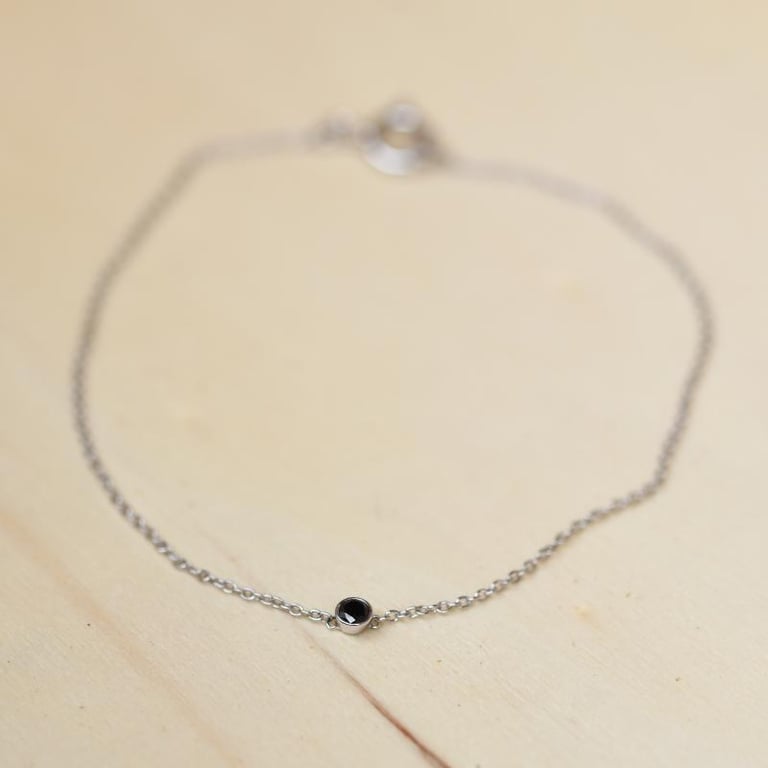 • das minimalistische und feine Armband in Weißgold mit schwarzem Diamanten spricht Klartext