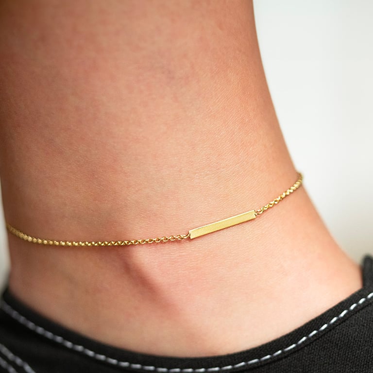• elegantes Fußkettchen mit einem schlichten Anhänger in Form eines länglichen Plättchens