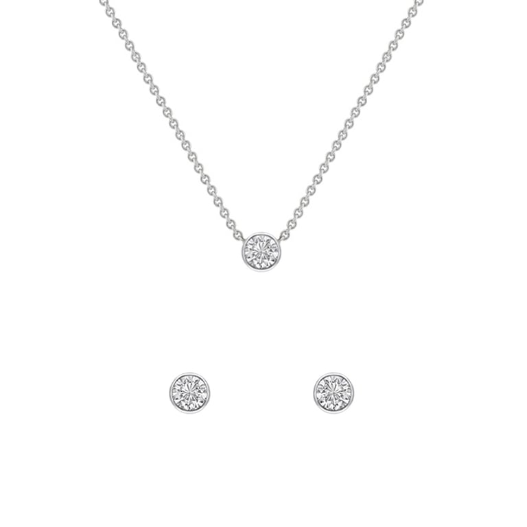 • das Design der dezenten Ohrringe und der Halskette funkelt dank der natürlichen Diamanten