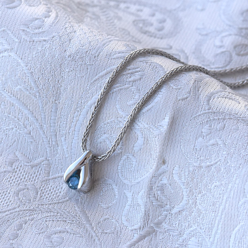 • zarte Accessoires mit einem bezaubernden blauen Diamanten in der Hauptrolle
