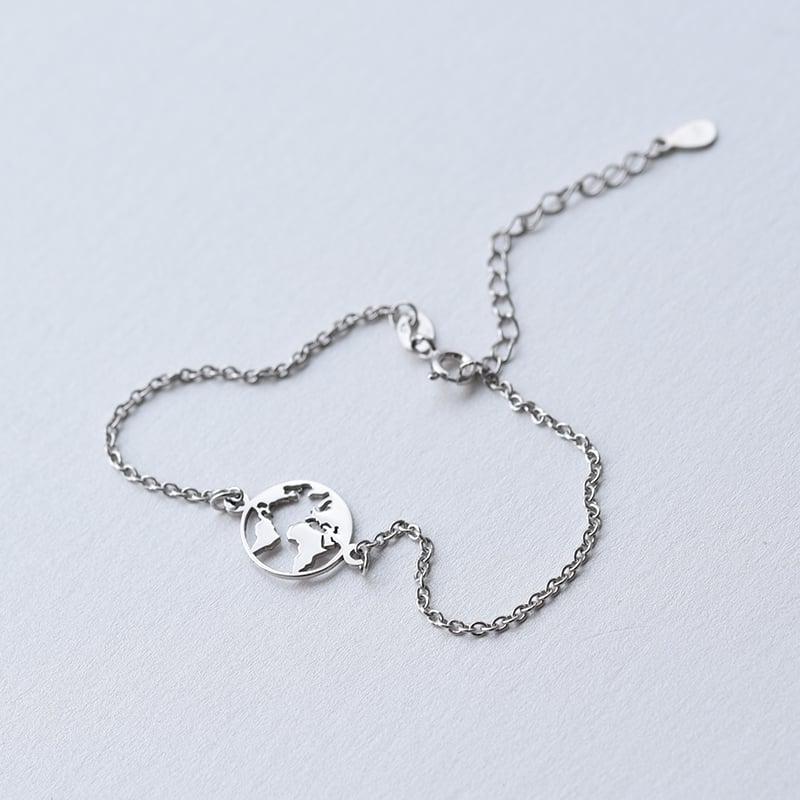 Minimalistisches Silberarmband mit Weltkarte Earth