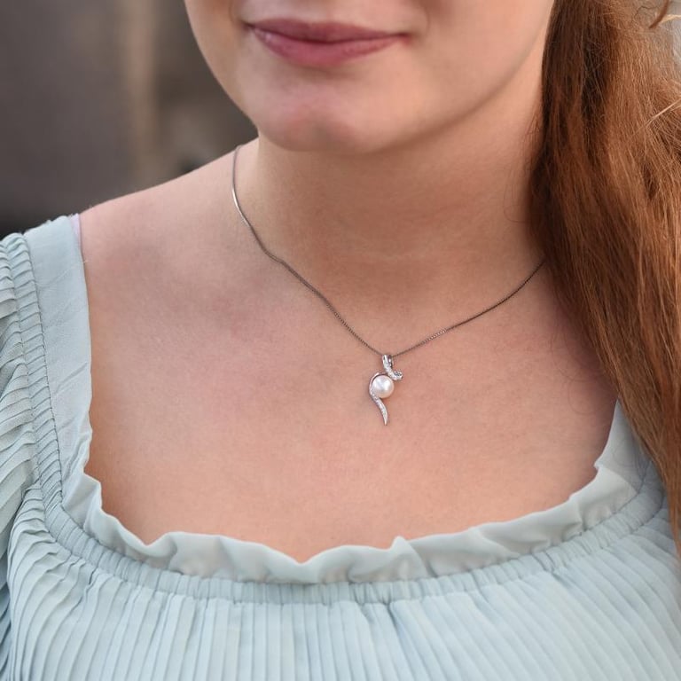 • der Anhänger, der durch die Perle gekrönt ist, wird von Zirkonia würdevoll unterstrichen