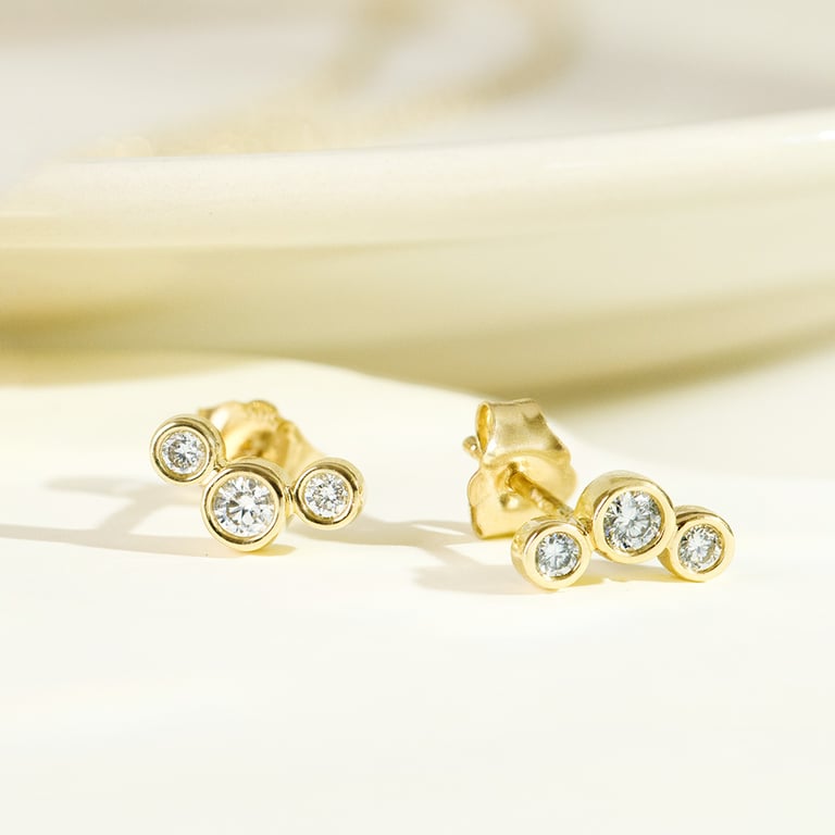 • sie bestehen aus drei runden Diamanten in verschiedenen Größen