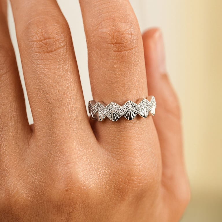 • der gesamte Ring ist mit 37 kleinen, runden Diamanten verziert