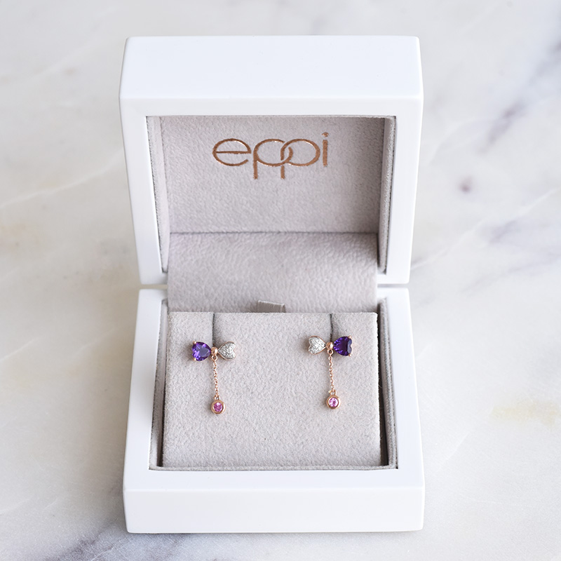 • den zarten Schmuck betonen die markanten Farben des Amethyst, Diamanten und Saphirs