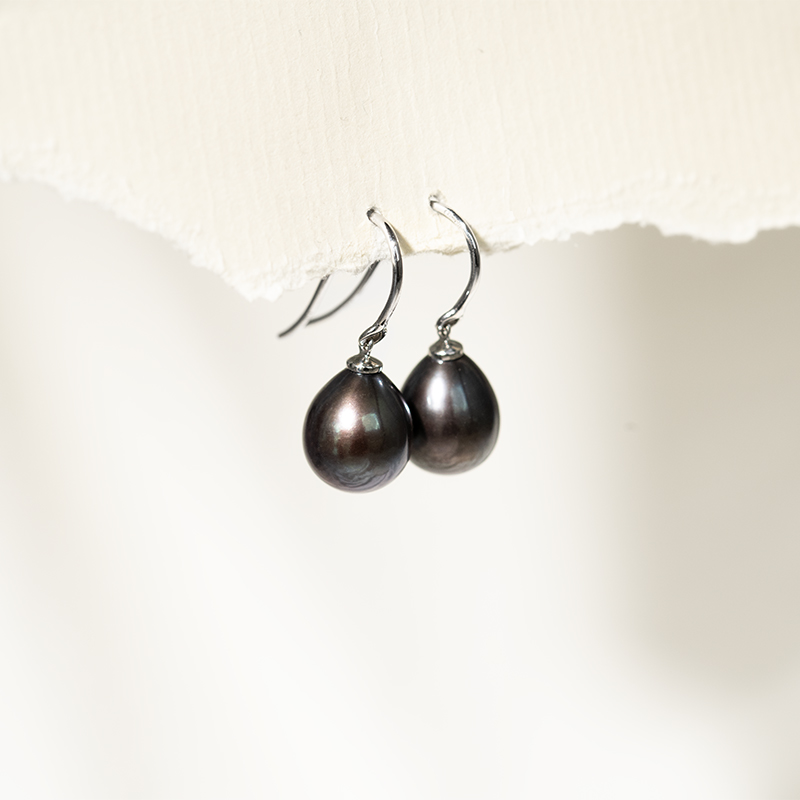 Ohrhänger mit schwarzen Tropfen-Perlen Parveen
