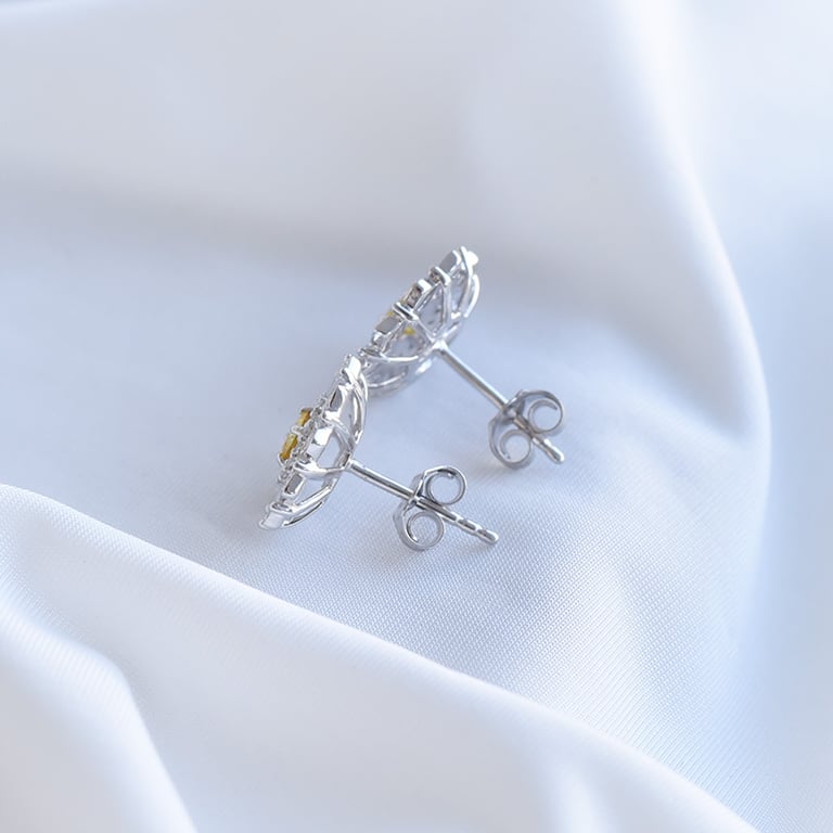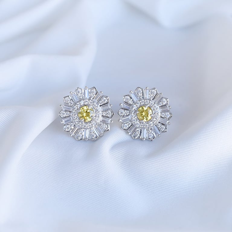 Ohrringe in Blumenform mit Diamanten und gelbem Saphir Olga
